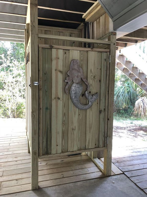 The first floor welcomes you into an open concept living/ dining/kitchen area. We have comfortable seating and a large flat screen TV, perfect for family movie nights after a fun-filled day at the beach. Our living area opens onto a wonderful screened-in porch with outdoor seating and a gas grill. We look out towards the St. Joseph's Bay and the entrance to the spectacular St. Joseph Pennisula State Park, which hosts one of the best beaches in the United States, ranked by Dr Beach.