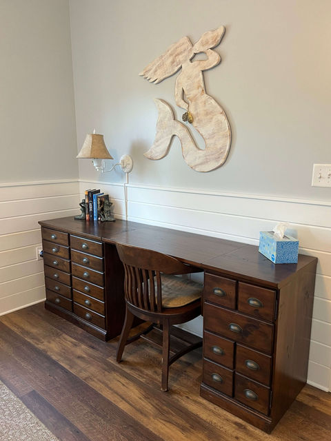 Upstairs, you will find a fun and whimsical queen suite located off the bright and comfy TV room. Cozy seating offers the perfect place to curl up and watch your favorite show or make it a quiet movie night. Sliding doors open onto a large deck, where you are greeted with another gorgeous view of the Gulf. Located in a lovely spot on the south end of the Cape, the coast at this point is in the shape of a crescent. From Sandpiper's deck, you can see all the way from Money Bayou around to the point at the turn of the Cape on Eglin Airforce Base, where you can almost feel the hug of the coastline. Everywhere on the Cape has amazing views, but truth be told, this is pretty spectacular. In the early evenings, you may be treated to the special sight of horseback riders peacefully strolling along the beach for sunset.